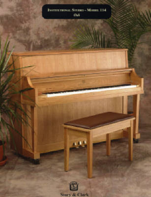 Story & Clark 45" Studio with Continental styling available in HG Ebony and HG Mahogany Professional 46" Studio is ideal for schools and churches. Comes with 4 double rubber casters for easy moving. available in Lt Oak, and Ebony