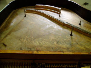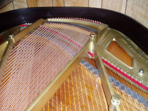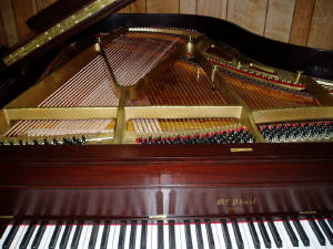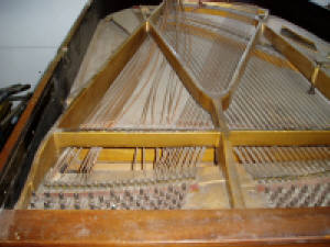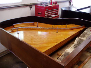 Strings and harp have been removed Picture of McPhail grand piano when it arrived to us Soundboard has been refinished Harp removed to be prepped Harp has been refinished Dismantling the piano Refinished harp re-installed into piano Piano has been restrung with all new strings Piano cabinet has been refinished to a beautiful red mahogany, and re-assembled New decal has been applied The (almost) finished product If you are considering rebuilding or refinishing your piano, please call us for an estimate. 651-484-0712 |